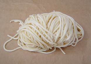 かんすいが入っている麺の事で、かんすいを使うことにより、色は黄色く、強いコシを持つ。もっちりとした歯ごたえで、本格的中華麺。工場長イチオシ!
